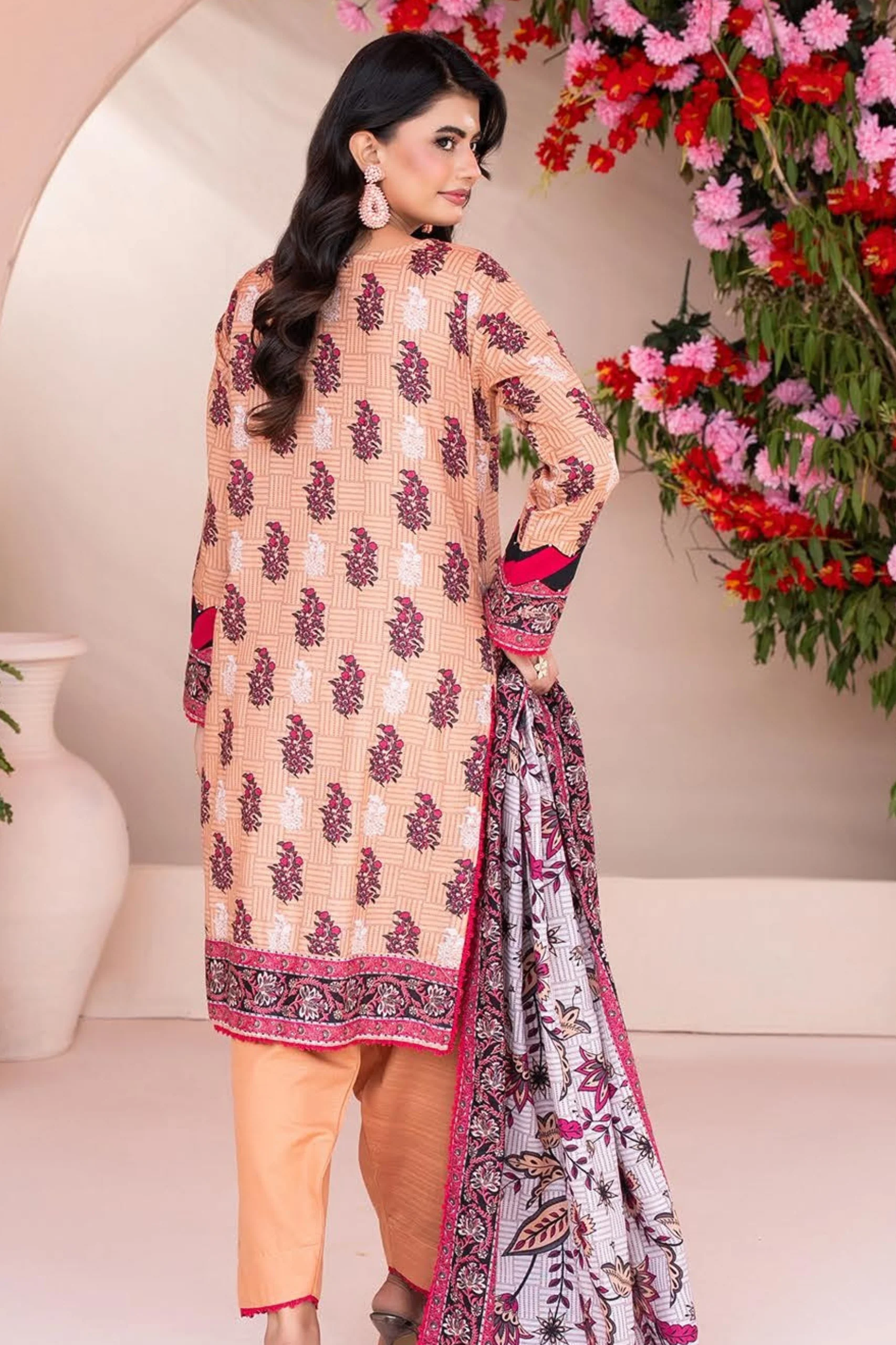 - Digital Printed Airjet Khaddar Fully Embroidered Shirt with Boring Daman